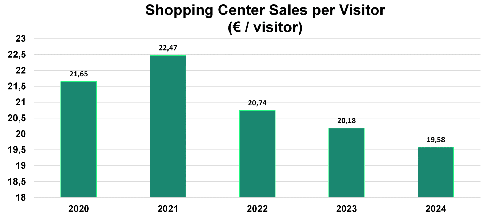 The Ministry of Economic Affairs and Employment forecasts that unemployment will begin to decline next year, which, if realized, could reduce consumer pessimism. However, these forecasts should be viewed with caution. Nevertheless, a falling unemployment rate would be a significant factor in restoring consumer confidence and supporting retail activity. Although total sales in shopping centers have increased, average spend per visit has been declining for several years. This may indicate that customers are visiting more frequently but making smaller purchases each time. During the COVID-19 pandemic, particularly in 2021, the situation was the opposite: visits were less frequent, but average spending per visit was significantly higher.