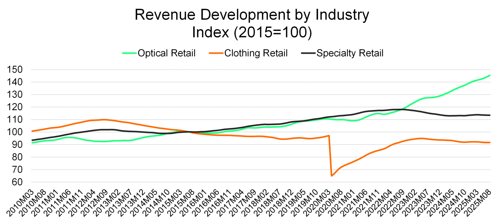 According to the Federation of Finnish Special Commodity Trade, the situation in specialty retail has been challenging this year. One clear exception to the overall weakness in specialty retail has been the optical sector where demand has remained strong—good vision is not something consumers are willing to compromise on. For example, according to Kaupan Tila, Silmäasema has succeeded in doubling its revenue and increasing its operating profit tenfold since 2017. Growth in the optical sector is driven by an aging population and the opening of new optical stores across the country, a trend that is also reflected in shopping centers.